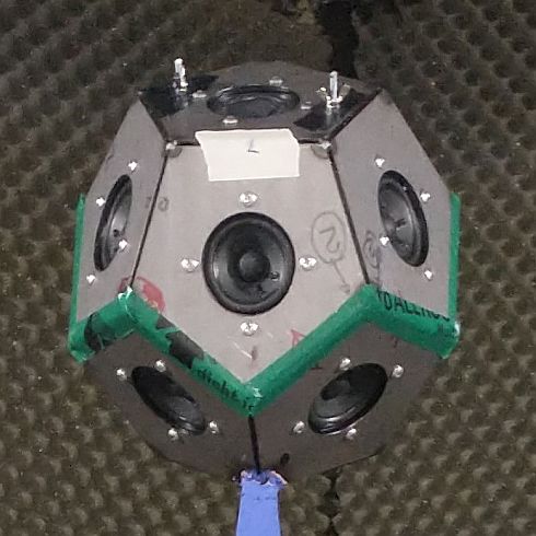Um dem Ideal einer Punktquelle näher zu kommen wäre im Mittel-/Hochtonbereich also eine "atmende Kugel" nötig, im Bassbereich wäre das Rundstrahlverhalten wegen der großen Wellenlängen und den vergleichsweise kleinen Tieftönern weniger kritisch. Und so entstand bei unserem Abonnenten High Five die Idee im Mittel-/Hochtonbereich ein sogenanntes Dodekaeder zu verwenden: