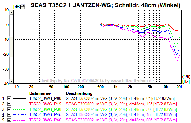 | SEAS T35C002 + JANTZEN-Waveguide | 370 + 90 | 35 | 165 | 27.5 | 1250 |