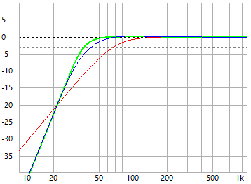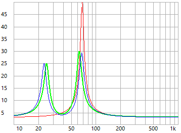 Simuliert man diese 3 Gehäuseabstimmungen mit WinISD V0.7, so ergeben sich folgende Kennwerte (gleiche Farben wie bei LASIP):