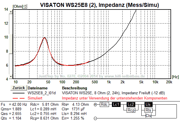 | TS-Parameter | Einheit | HiFi-Selbstbau | VISATON | Abweichung (original) |