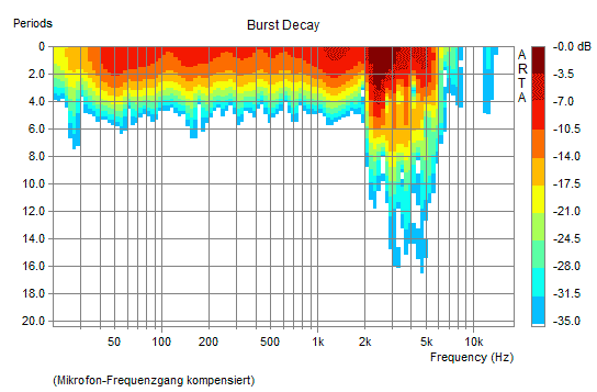 Die Zerfallspektren beider Chassis sehen bis 2 kHz perfekt aus, zwischen 3 und 5 kHz ist dann das Ausschwingen mit bis zu 16 Perioden besonders lang.