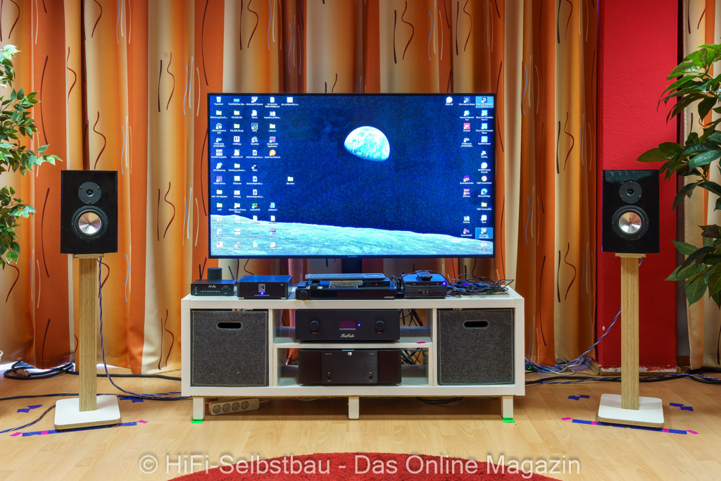 - Alle Lautsprecher standen auf derselben Hörposition, die Höhe des ggf. notwendigen Ständers wurde angepasst (3 verschiedene Höhen standen zur Verfügung)