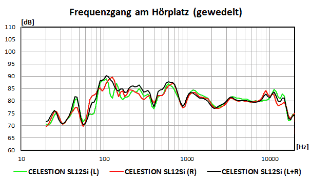 | CELESTION SL12Si | -3.93 dB | 82.47 dB | +/- 2.62 dB | 0.11 +/- 1.28 dB | dunkel |