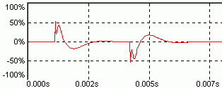 Durch die Gruppenlaufzeit der verwendeten Filter von ca. 0.125 ms (= 4.3 cm) kommt der Mitteltonanteil bereits etwas zu "spät".