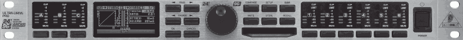 So, jetzt geht's erst mal ans Einstellen des DCX2496! Ich will hier nicht die Bedienung des DCX2496 im Einzelnen erklären. Dazu kann man sich das sehr gut gemachte Handbuch von der BEHRINGER-Homepage runterladen (ACHTUNG: 3,2 MB).