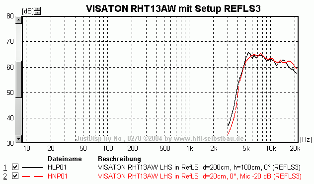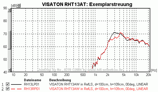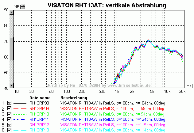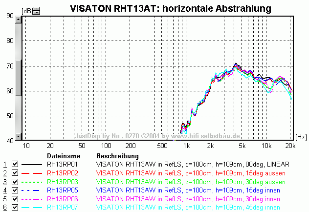 ->Bis +/- 15° horizontal bzw. +/- 8.5° vertikal (= +/- 15cm) ist die Abstrahlung des VISATON RHT13AW sehr gleichmäßig