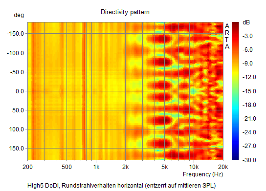 -> bis zur 3150 Hz-Terz sehr gleichmäßiges Rundstrahlen, darüber zeigen sich ein 12-Zack