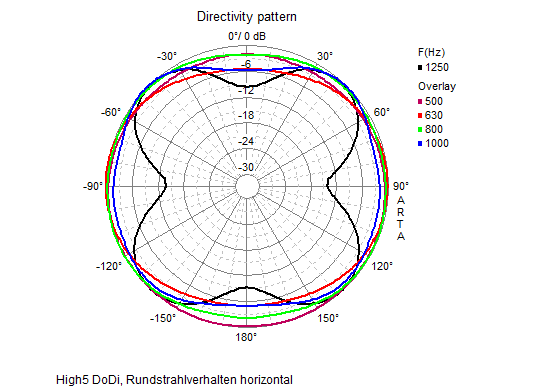 -> in der 630 Hz-Terz gibt es erste Eindellungen im Rundstrahlverhalten, das bis 1 kHz fast perfekt ist