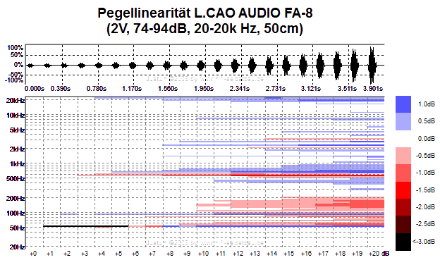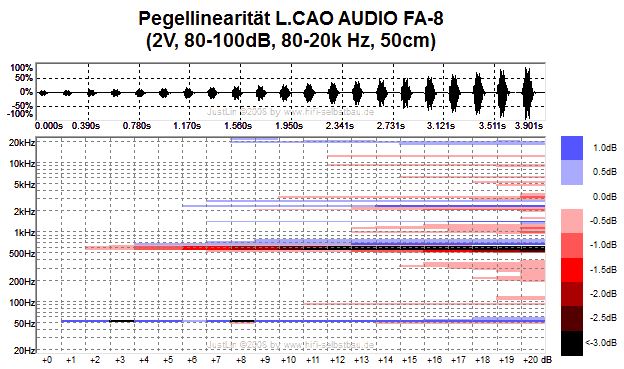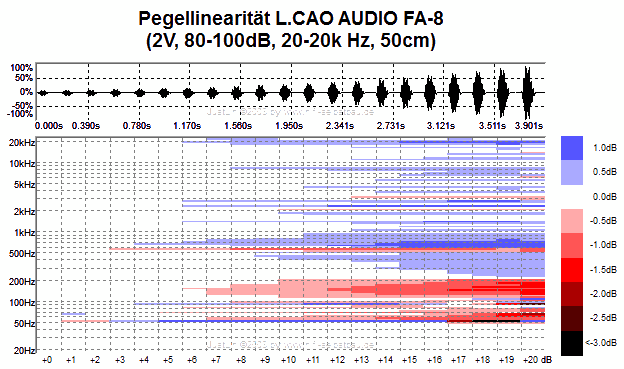 Die Pegellinearität ist auch im Fullrangebetrieb gut (Einschränkung s.u.) - solange man es pegelmäßig nicht übertreibt. Eine Entlastung unter 80 Hz dankt der FA-8 mit höherer Dynamik im Grundtonbereich.