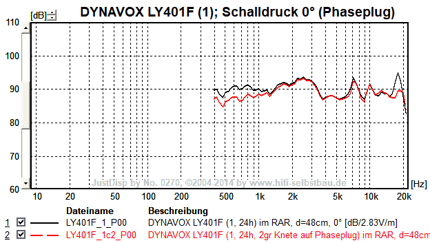 Um die Wirkung des mitschwingenden Phaseplugs zu messen haben wir probehalber 2 gr Knete auf die Spitze des Phaseplugs geklebt: