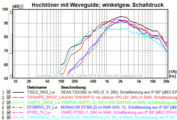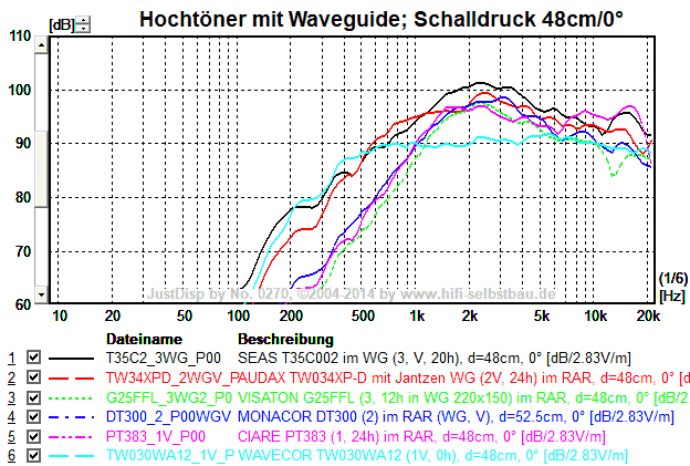 Hier eine Liste der von uns gemessenen Hochtöner mit "größerem" Waveguide: