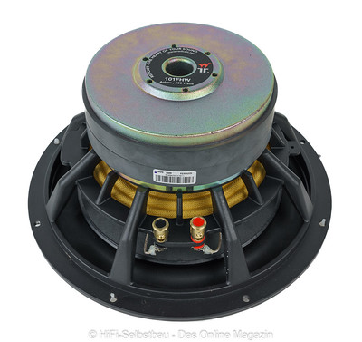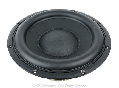 Auch er hat eine Papiermembran, aber im Gegensatz zum SW10.8PM / 101FHWX8-118B hat er eine Nennimpedanz von 4 Ohm und eine Polkernbohrung. Die Nennimpedanz von 4 Ohm ist günstiger für den Einsatz eines einzelnen Chassis bei Ansteuerung mit Class-D-Endstufen, da diese an 4 Ohm oft eine deutlich höhere Leistung abgeben können. Die Polkernbohrung sollte für geringere Strömungsverluste sorgen - der SW10.8PM hatte nur ein Qms von 1.59 . . . Ansonsten erwarten wir keine großen Unterschiede zur 8-Ohm-Version.
