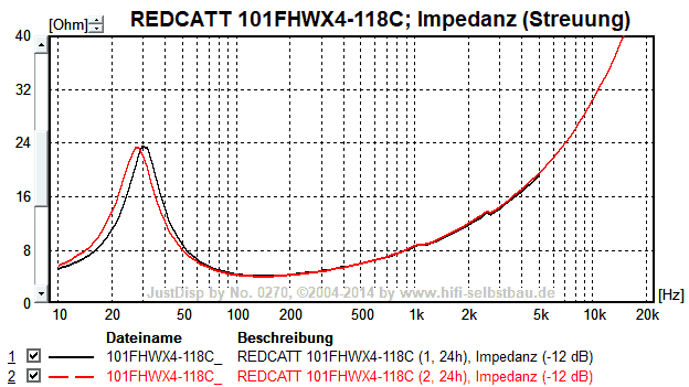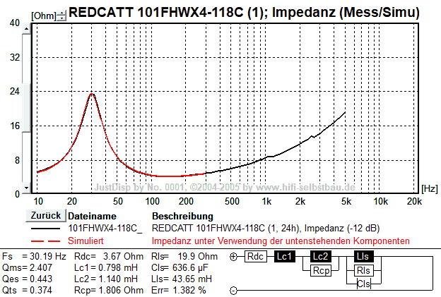 | TS-Parameter | Einheit | HiFi-Selbstbau | REDCATT | Abweichung (original) |