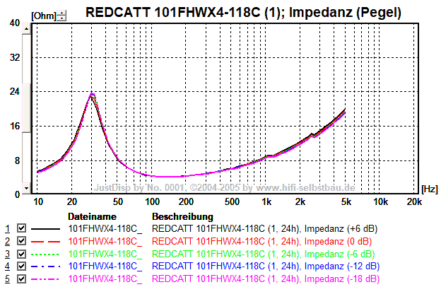 | TSP (Mittelwert und Streuung von 2 Chassis, Anregung -12 dB): |