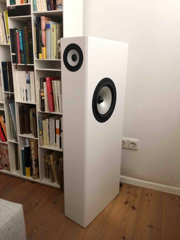 Das tat sie aber und es sprach sich herum. Als das Koaxial- Chassis OmnesAudio CX30, mit seinem quadratischen Korb, durch den Nachfolger CX3.1 mit rundem Korb ersetzt wurde, musste eine DreiZwo MkII her, was wir auch gemacht haben. Wir haben dann auch den Tieftöner gewechset, da es mittlerweile den sehr guten OmnesAudio W8 Alu gab, der es uns ermöglichte eine DreiZwo MkII mit höherem Wirkungsgrad zu konzipieren.