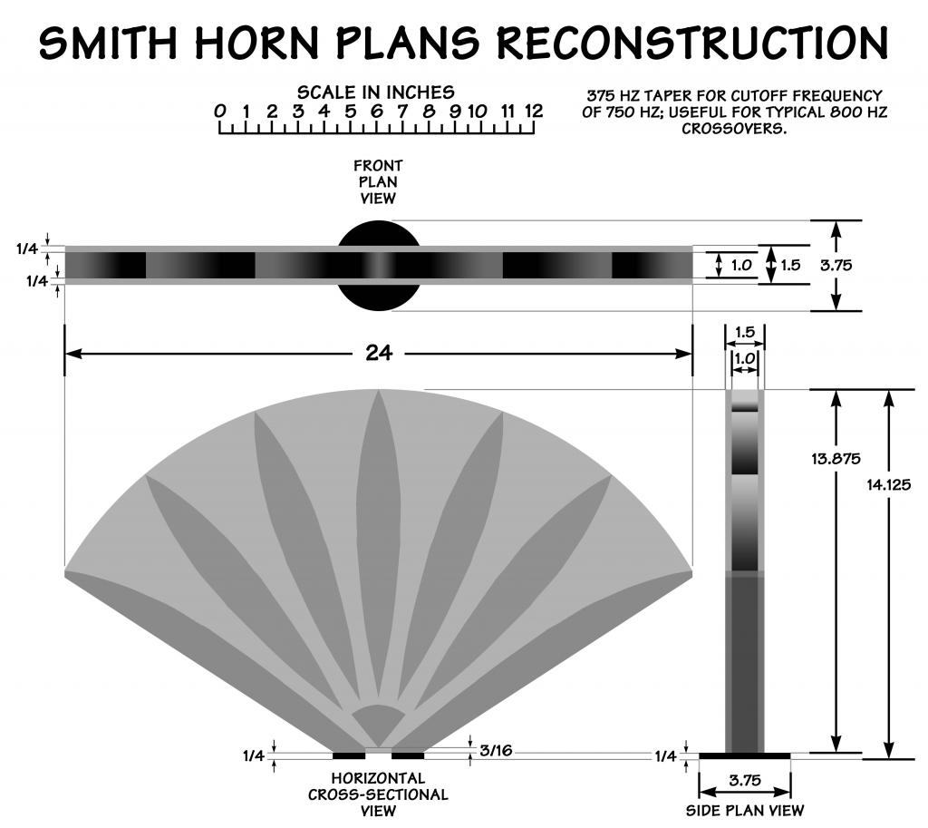 Mittlerweile hat uns eine weitere "Interpretation" des Smith-Horns unseres Abonnenten vaues erreicht, welche er viele Jahre in seinem System im Mitteltonbereich betrieben hat. Der prinzipielle Aufbau entspricht dem im Lansing-Heritage-Forum 2010 veröffentlichten Plänen (s. Link):